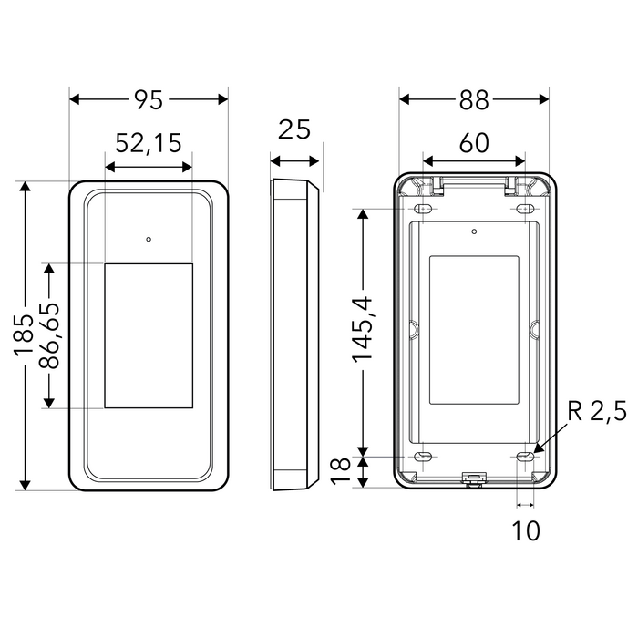 SafeLine LEO 4:n alumiinikehys, joka mahdollistaa helpon pinta-asennuksen joko vaakasuuntaan tai pystysuuntaan. Asenna pohjalevy seinään kahdella ruuvilla ja kiinnitä kehys koukulla ja yhdellä alapuolisella ruuvilla.