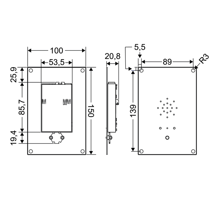 Frontplaten monteres med fire skruer. LED-er for eksterne piktogrammer og en nødknapp kan enkelt kobles til med den medfølgende RJ45-kabelen.